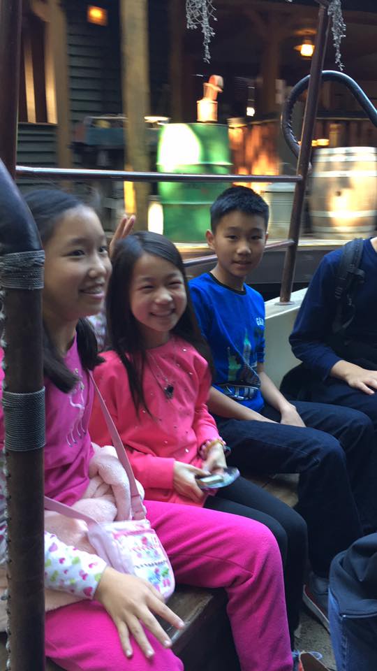 The line was long and we waited for a long time. By the time, it was almost our turn, we were turned away as someone had got off their ride before they are supposed to, so they had to shut the ride down for safety check. What a bummer! So, the kids went on the ride of the King Triton's Carousel before heading to Mater's Junkyard Jamboree in Cars Land.